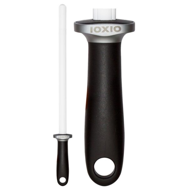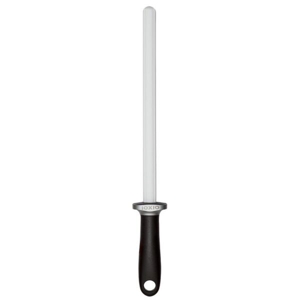 Questo modello, grazie alla sua forma ovale, garantisce due lavorazioni differenziate: sulla parte dorsale (di lato) essendo più abrasivo permette al coltello di riacquisire il tagliente perso e invece sulla parte frontale dell’acciaino è possibile perfezionare e quindi finire la lavorazione di ravvivatura del filo tagliente. L’asta di affilatura ovale è realizzata in ceramica estremamente dura e altamente resistente all’usura.